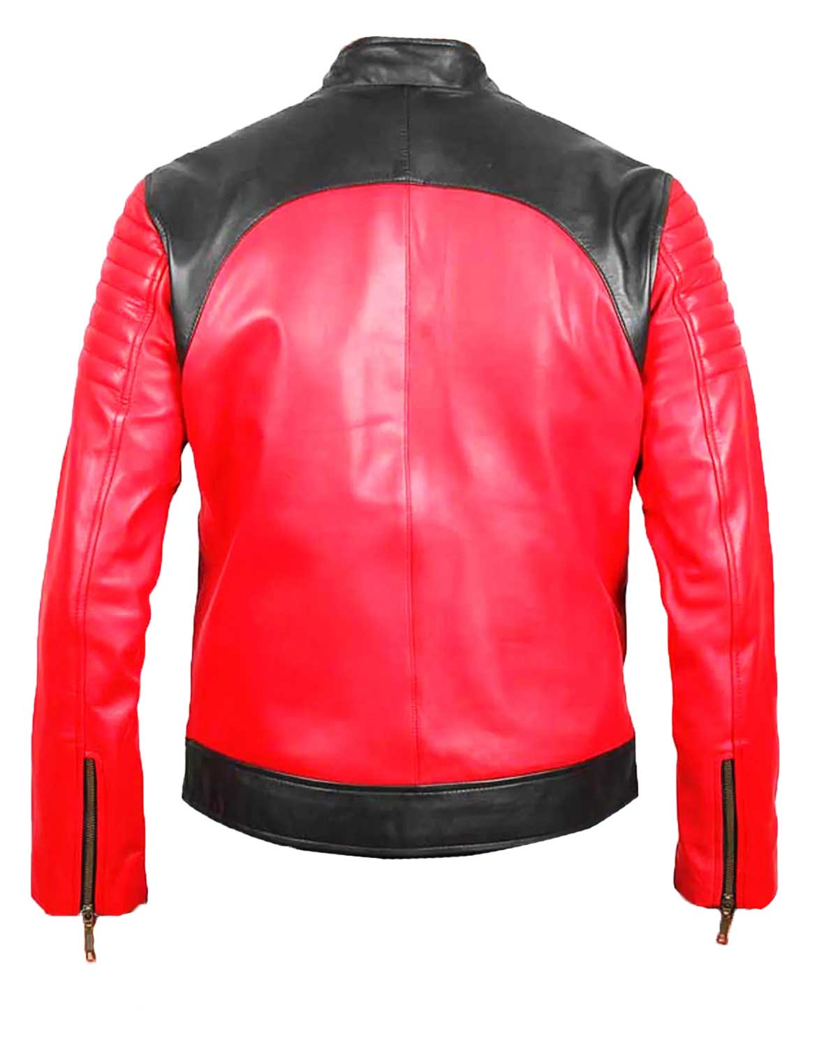 The Men's Padded Red and Black Sheepskin Leather Biker Jacket will help you improve your style game. This jacket, made of premium leather, has a bold red and black color scheme that elevates your outfit.