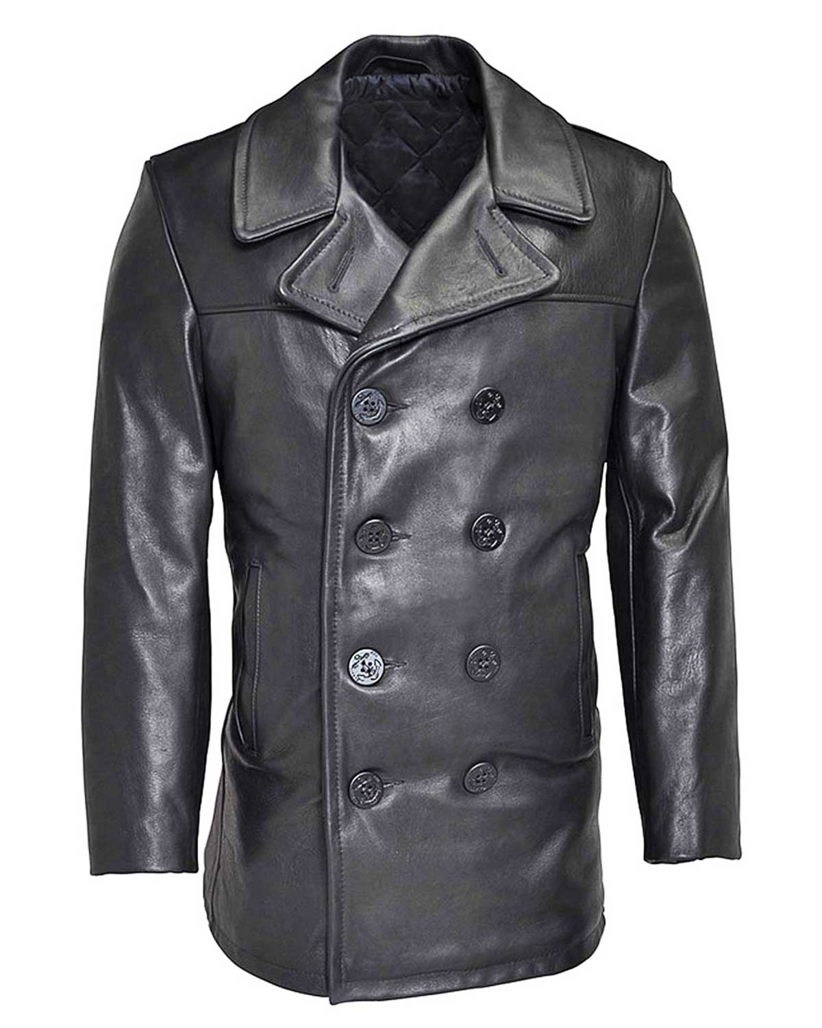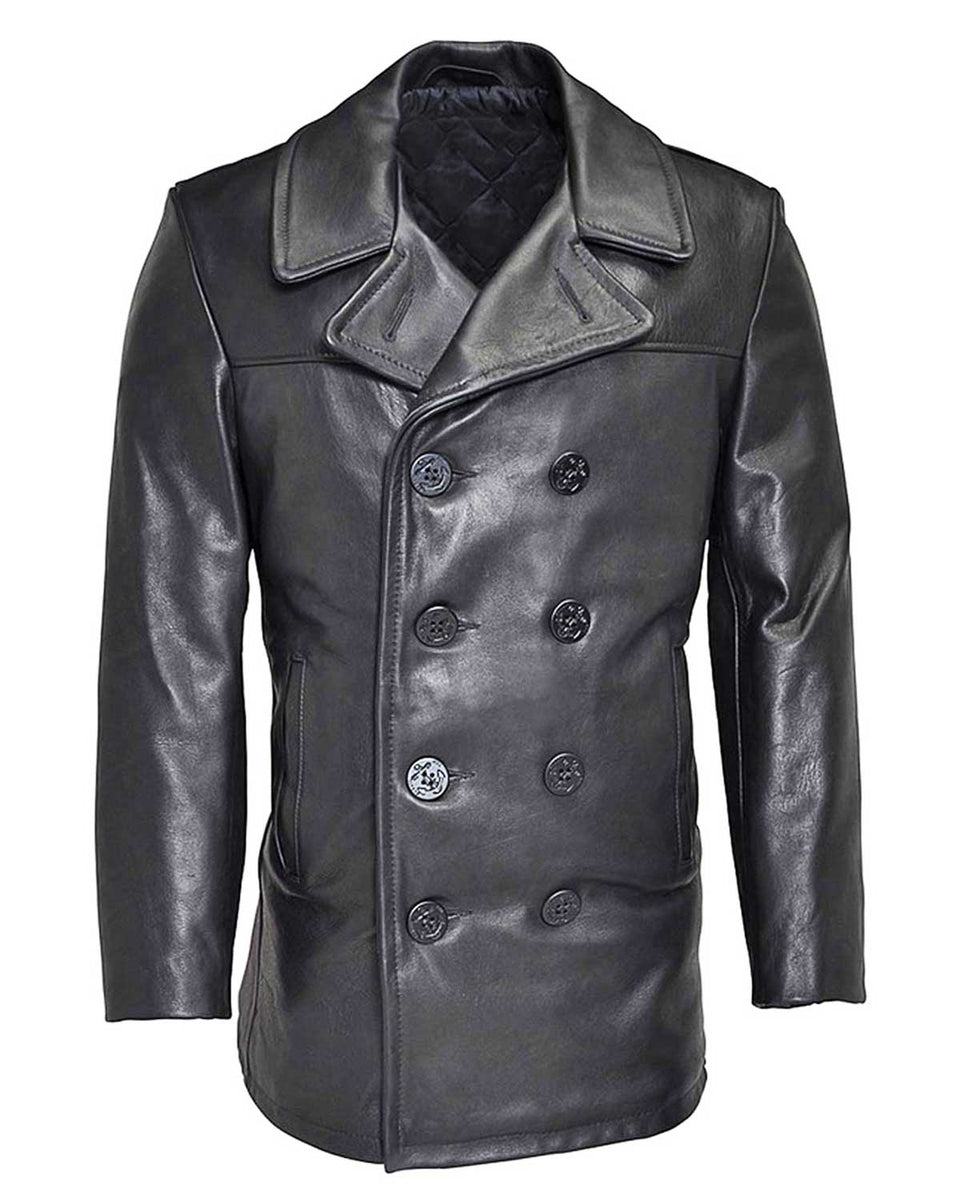 Elevate your style with the Men’s Naval Double Breasted Black Leather Coat. Crafted from premium cowhide leather, this coat exudes sophistication in a timeless black color. The lapel style collar, buttoned closure, and full sleeves add a classic touch to your ensemble.