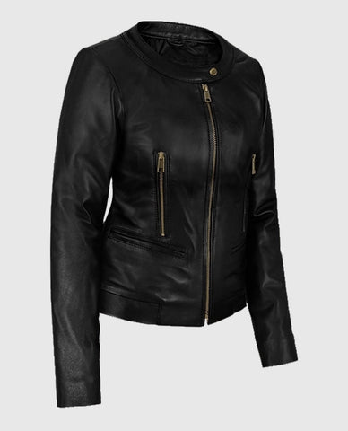 Women's Black Cafe Racer Leather Jacket Sale