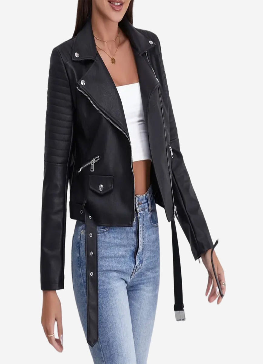 Adina Womens Black Leather Biker Jacket Sale