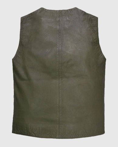 Basicallo Green Washed and Wax Leather Vest For Men - XS