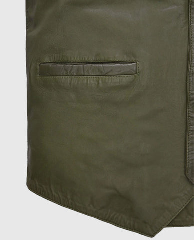 Basicallo Green Washed and Wax Leather Vest For Men Sale