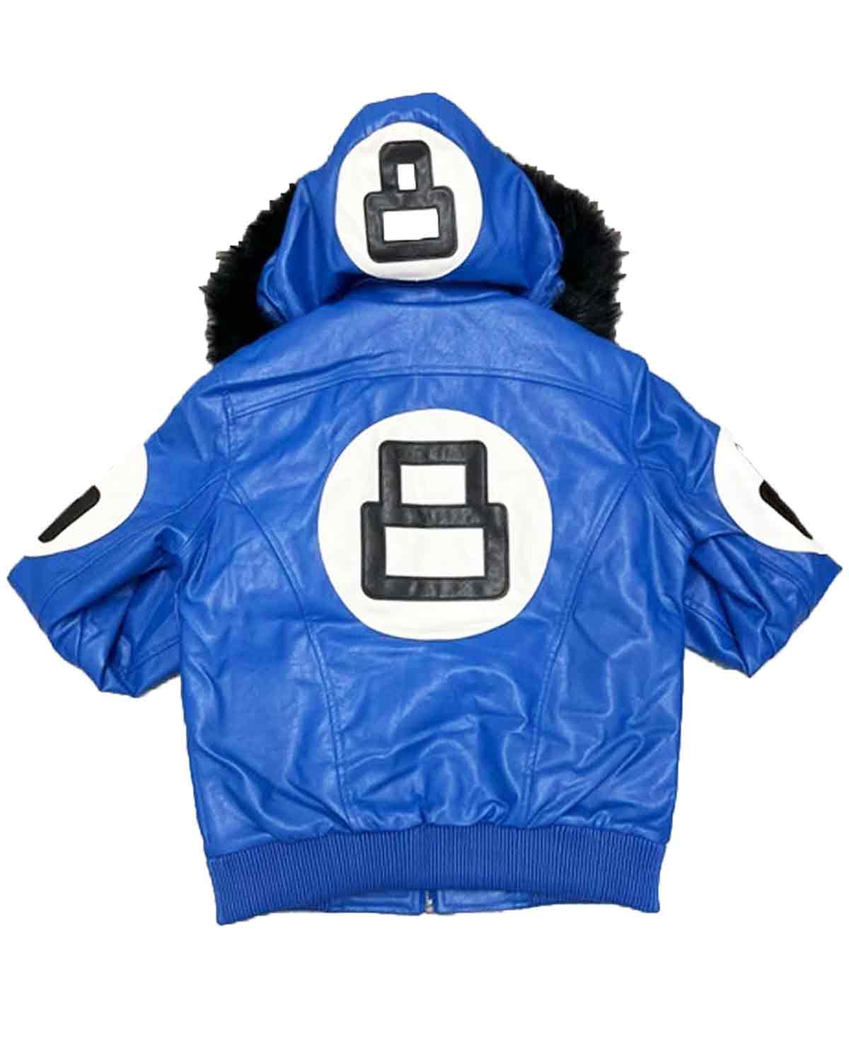 The Men's Sheepskin Blue Men's Jacket with the 8 Ball Logo Fur Hood will up your style game. This jacket is made of real leather and is faithful. It is incredibly comfortable to wear and works well for a variety of occasions thanks to the inner viscose lining.
