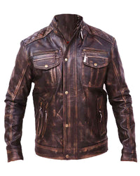 Introducing a sleek and sophisticated garment tailored for the modern gentleman. Embrace timeless elegance with this black-colored jacket, meticulously crafted from real leather. Designed exclusively for men, the Abracci Cafe Racer Jacket front features a stylish zipper closure, seamlessly blending convenience with contemporary aesthetics. The soft viscose lining provides a luxurious touch against the skin, ensuring optimal comfort throughout the day.