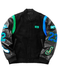 Step into urban style with the Aleali May Air Jordan Letterman Jacket, a fusion of real leather and wool fabric. This Air Jordan Letterman black Jacket pays homage to Aleali May's iconic fashion sense, blending comfort with a trendy design.