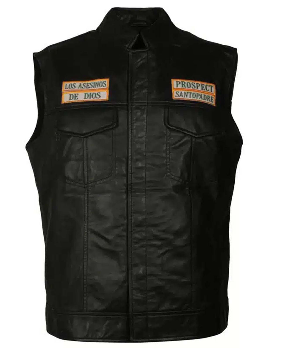 Presenting you the Men's Black Leather Mayans Biker Vest, as worn by Michael Irby in Mayans MC. Prepared from genuine leather, this vest is not only strong but authentic as well. The stand-up collar adds a classic touch, while the inner viscose lining ensures a snug and comfortable fit.