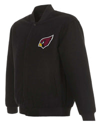Elevate your wardrobe with our unisex black wool cardigan a timeless piece that seamlessly blends style and comfort. The rib-knitted collar, cuffs, and buttoned closure exude refinement, while the long and fitting sleeves showcase a modern profile. Adorned with a subtle logo on the front, this Arizona Cardinals Bomber Black Wool Jacket is a symbol of classic elegance.