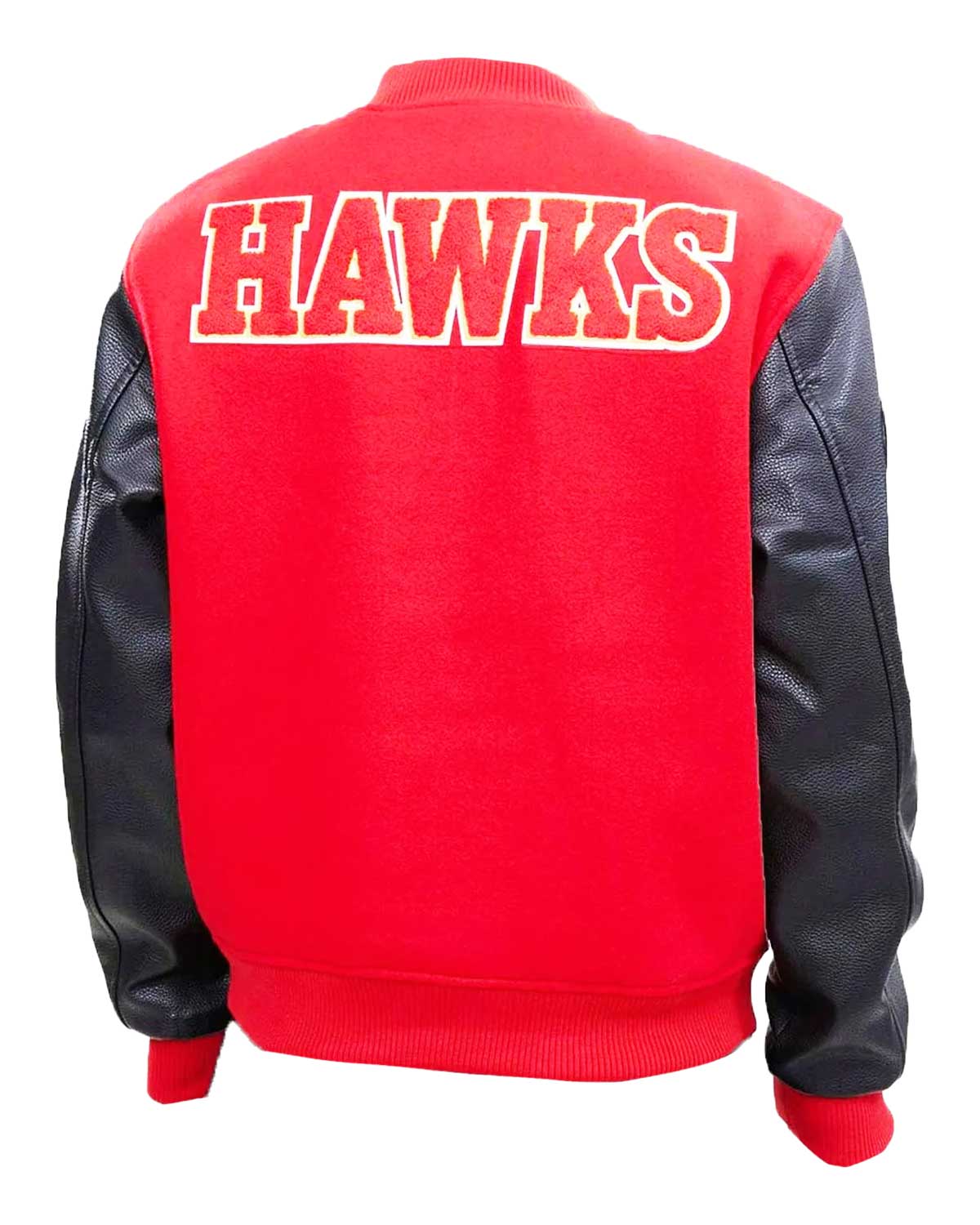 Unleash your team spirit with the Atlanta Hawks Letterman Black and Red Jacket. Combining classic styling with modern design, this Hawk Red Black Varsity Jacket is a tribute to the passion of Hawks fans. The striking combination of red and black, along with meticulous detailing, makes it a standout piece for those who want to showcase their team's pride in style.