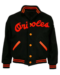 Designed with long sleeves, the Baltimore Orioles 1966 Varsity Jacket provides warmth during cooler weather. Two waist pockets outside and two inside pockets offer practicality and storage.