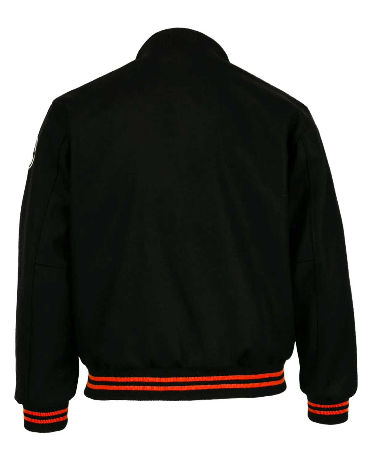 Featuring a soft viscose lining, the jacket ensures a cozy and comfortable fit. The snap tab button closure adds a classic varsity touch, while the rib knitted collar and cuffs contribute to the timeless design.