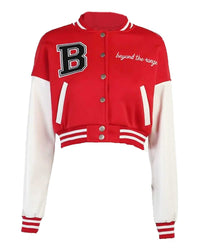 Glowrexs Beyond The Range Cropped Letterman Jacket - XS / Red