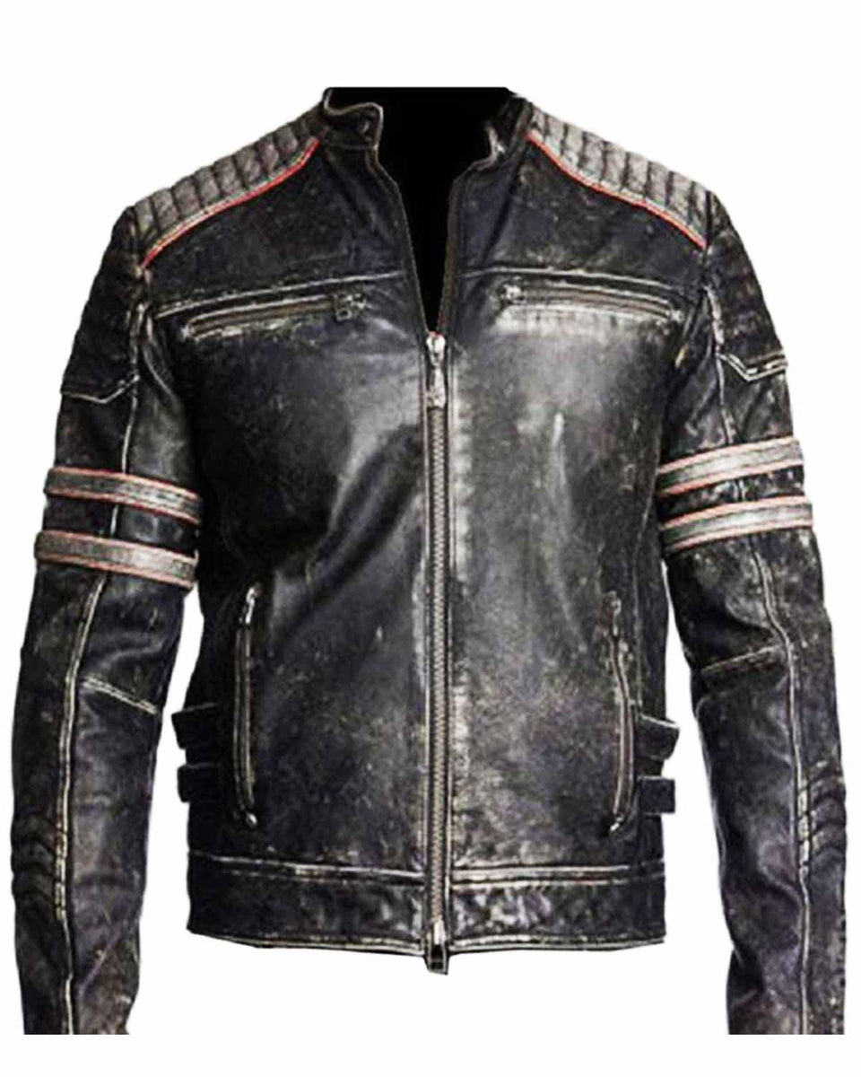 Glowrexs Biker Vintage Distressed Jacket Skull Embossed Logo at back Sale