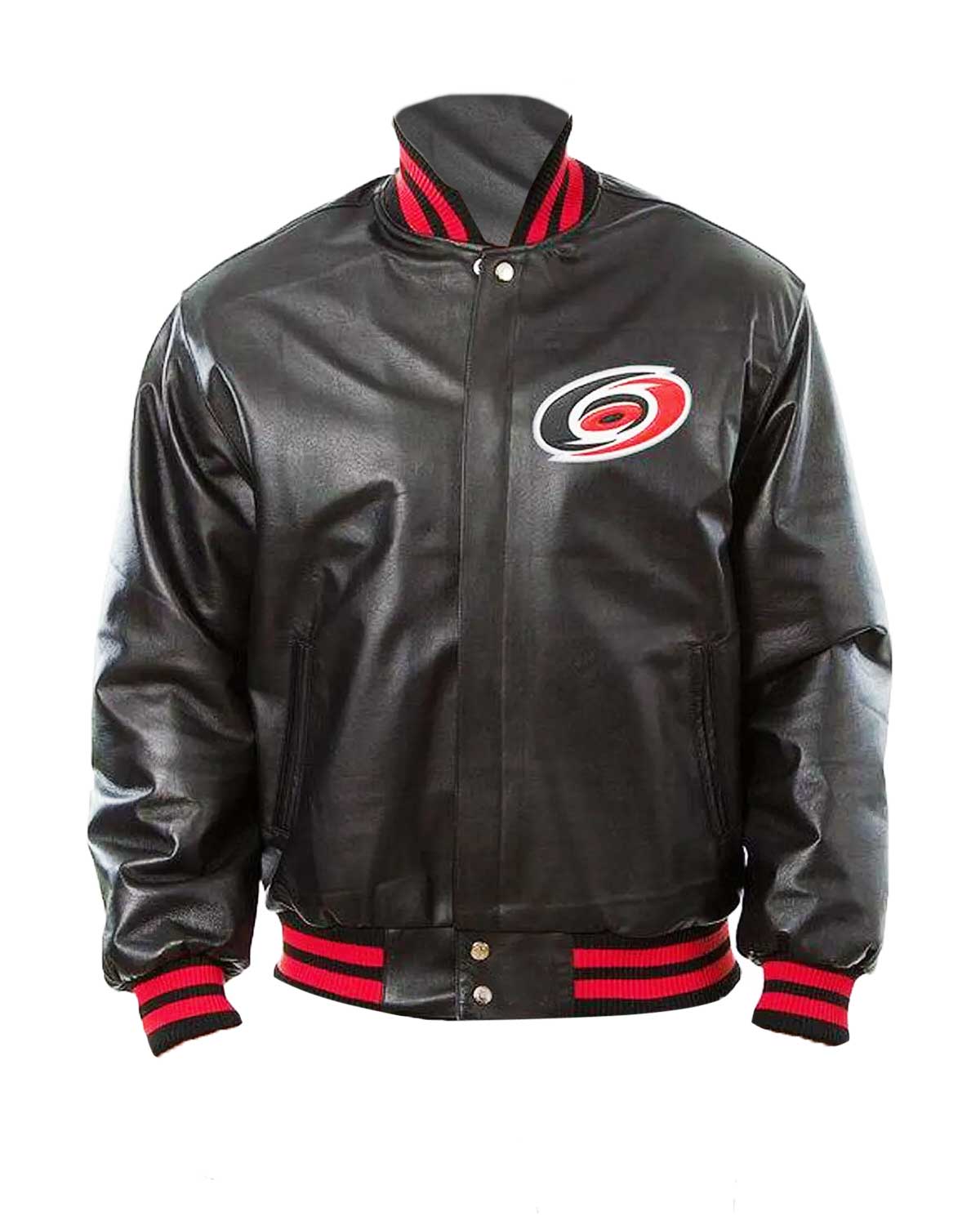 Glowrexs Carolina Hurricanes Bomber Black Leather Jacket Sale