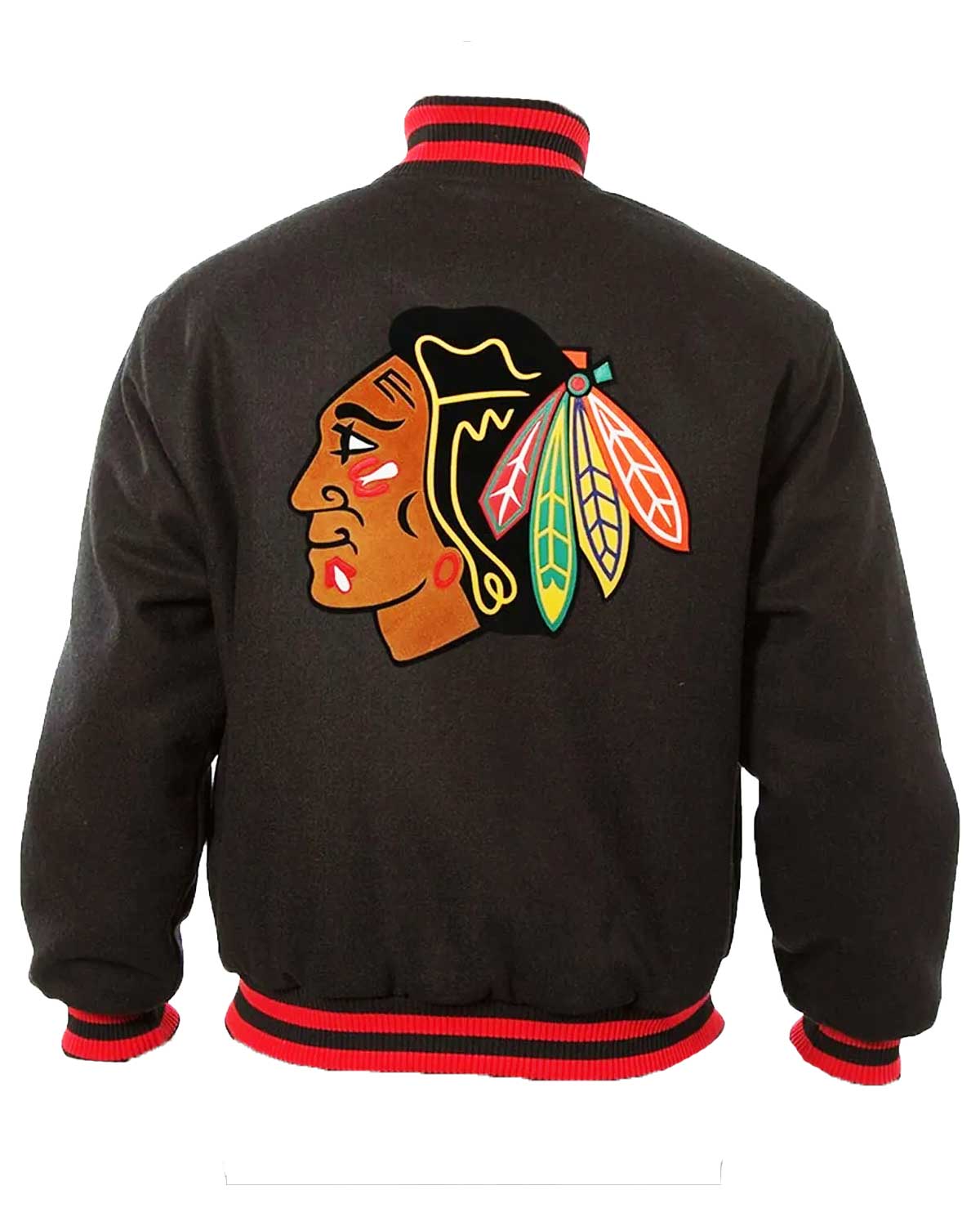 Glowrexs Chicago Blackhawks Bomber Black Wool Jacket Sale
