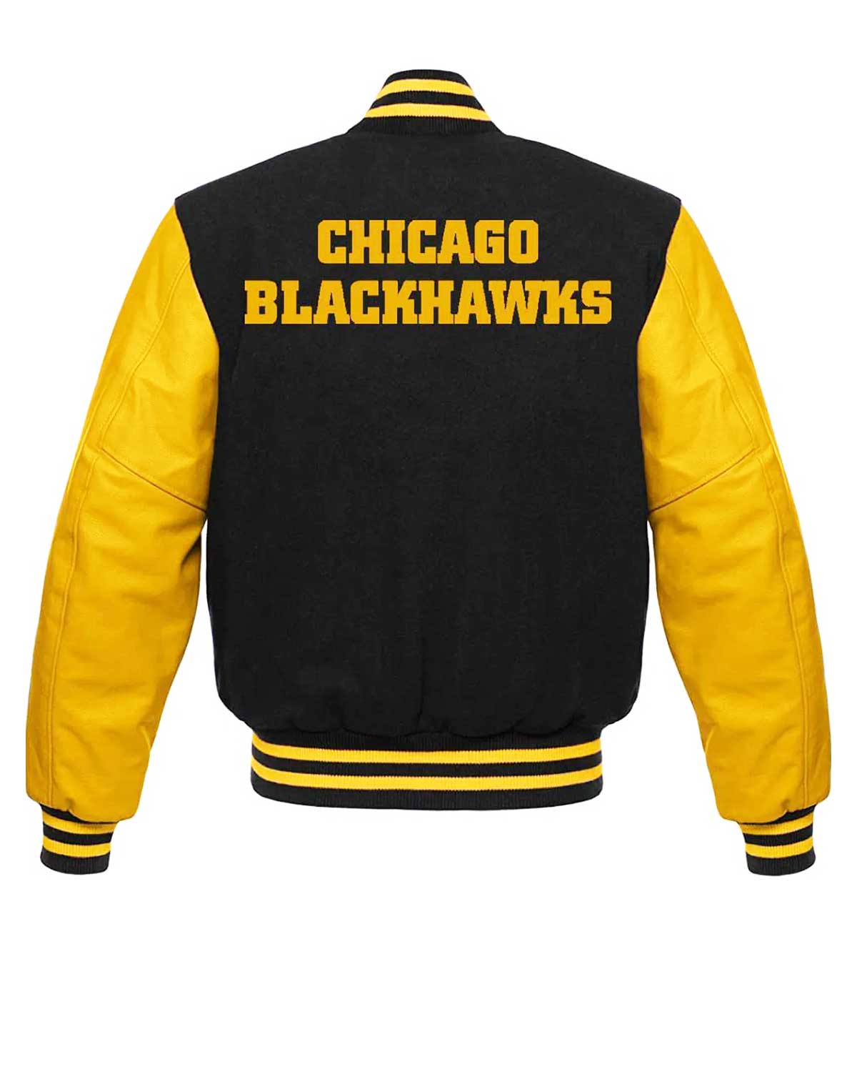 Glowrexs Chicago Blackhawks NHL Black and Yellow Varsity Jacket Sale