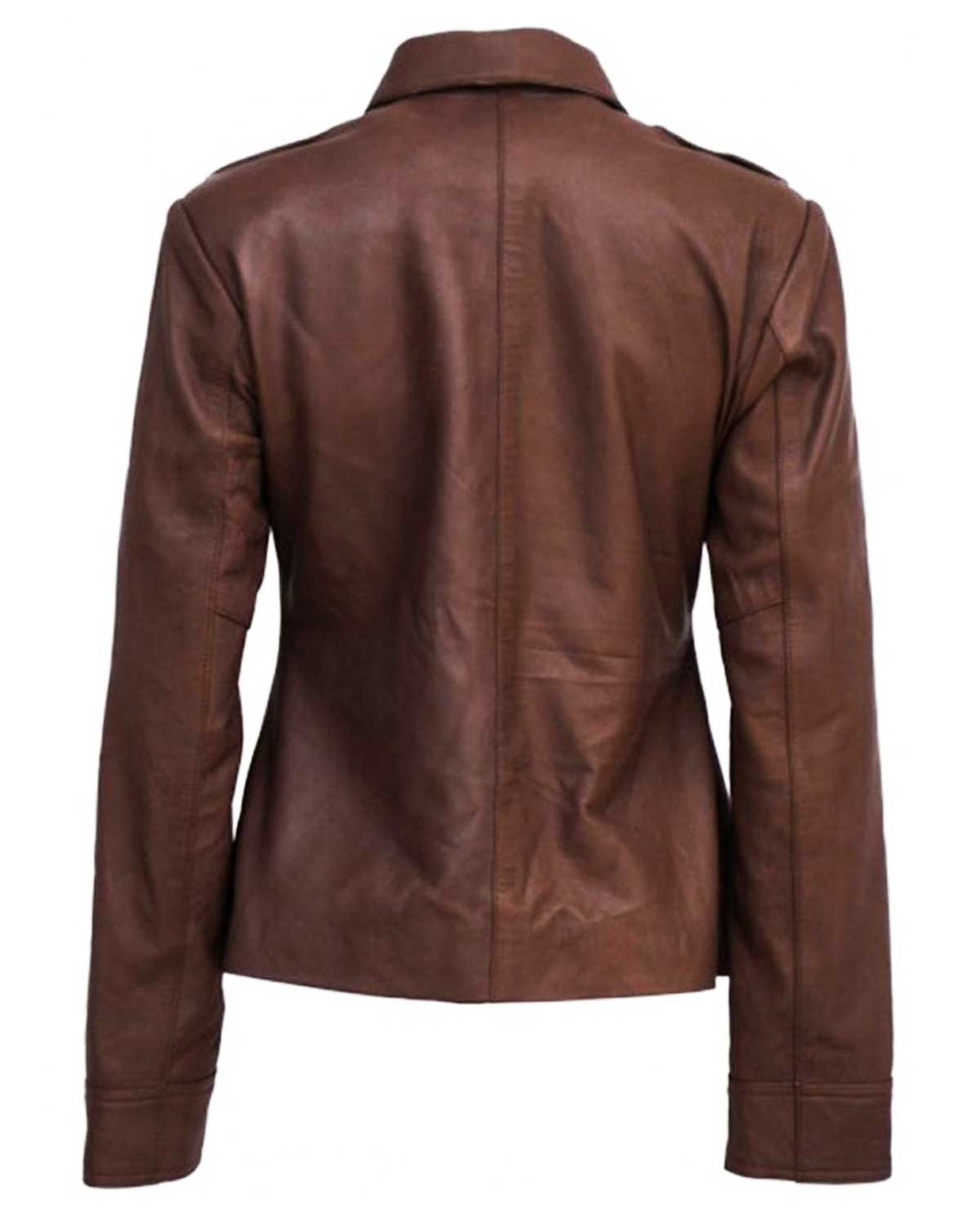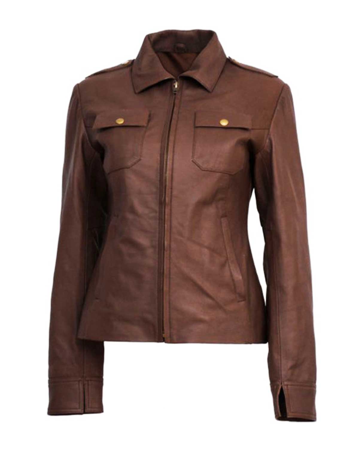 Glowrexs Chloe Price Brown Leather Cropped Jacket Sale