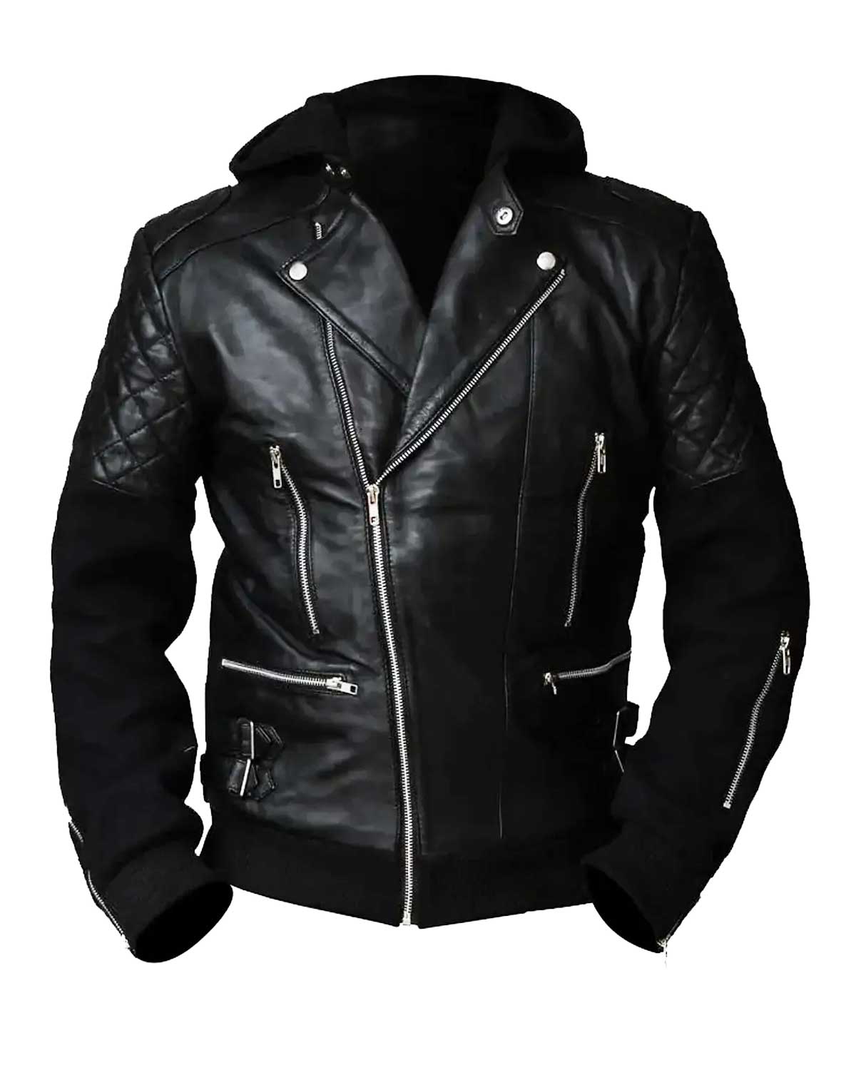 Glowrexs Chris Brown Black Motorcycle Jacket with Hood Sale