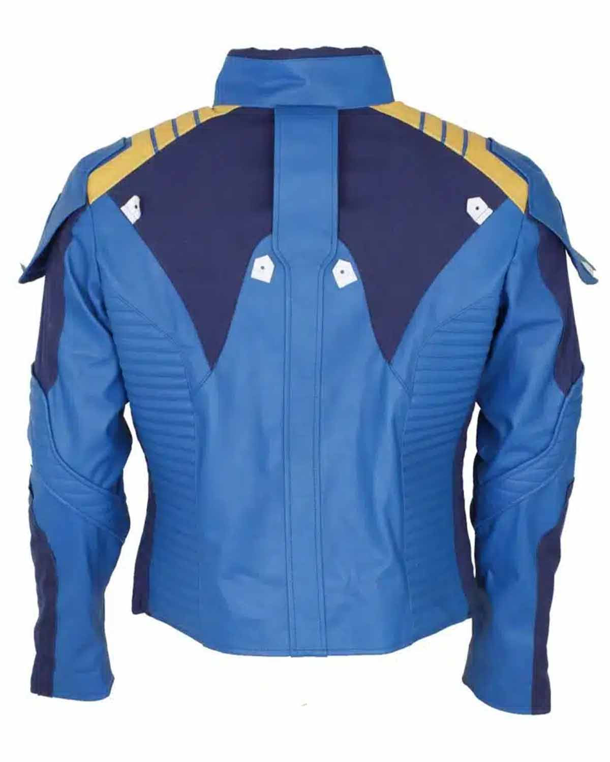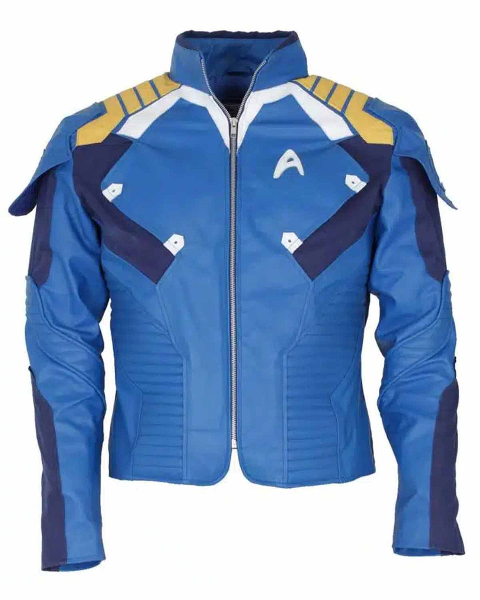 The main highlight of the jacket is the Star Trek logo on the front, which adds a distinctive touch and pays homage to the iconic franchise. The jacket is vibrant blue, matching Captain Kirk's uniform from the movie. The jacket's design includes quilted stitching on the sleeves and front, which not only adds to its visual appeal but also provides extra texture and detail. It has a YKK zip closure on the front, making it easy to put on and take off while keeping you well-protected from the elements.