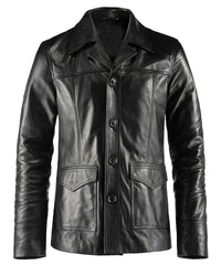 Glowrexs Classic 70’s Hitman Black Leather Jacket Sale