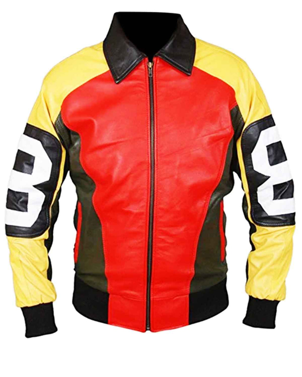 The vibrant combination of Orange, Yellow, and Black adds a bold and eye-catching element to the design. The Spread Collar and Zipper closure enhance the classic yet modern appeal of the David Puddy 8 Ball Jacket.