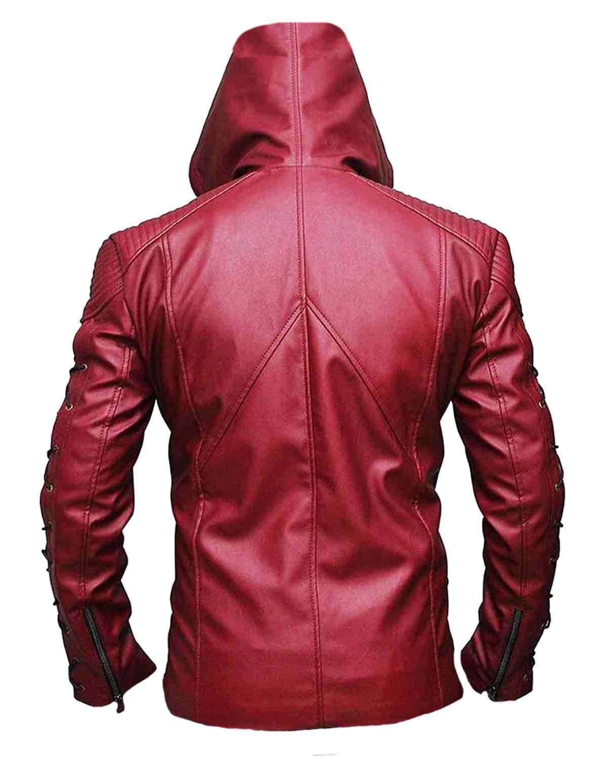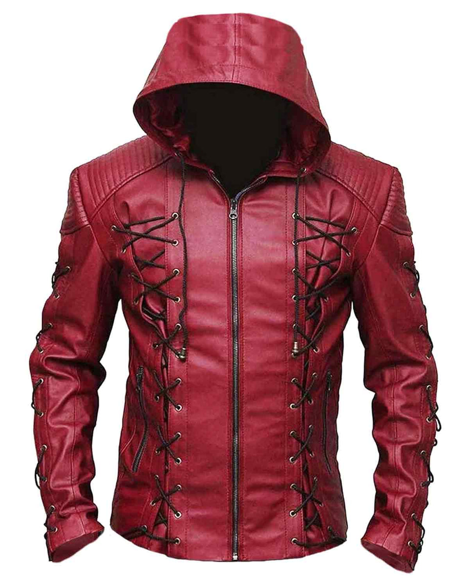 Introducing the DC Red Arrow Inspired Red Hood Leather Jacket, a homage to the TV series Arrow Season 3, as worn by Colton Haynes portraying Roy Harper. Crafted from real leather, this DC Red Arrow Hood Leather Jacket combines durability with a touch of celebrity style.