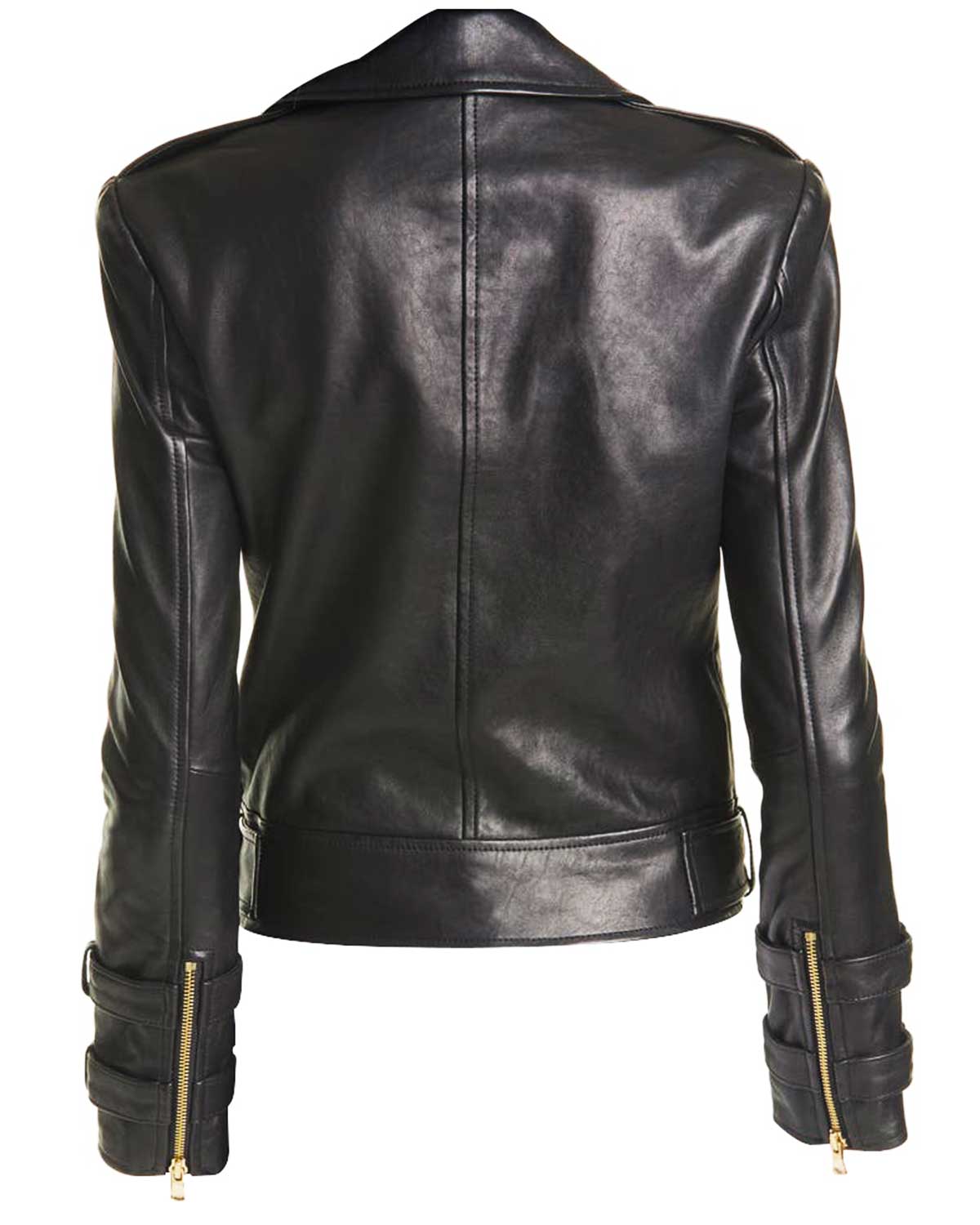 The two outside waist zipper pockets provide both functionality and style. Adding to its appeal, the belted hemline highlights your look. Lined with soft viscose, this black leather jacket seamlessly combines comfort with timeless fashion.