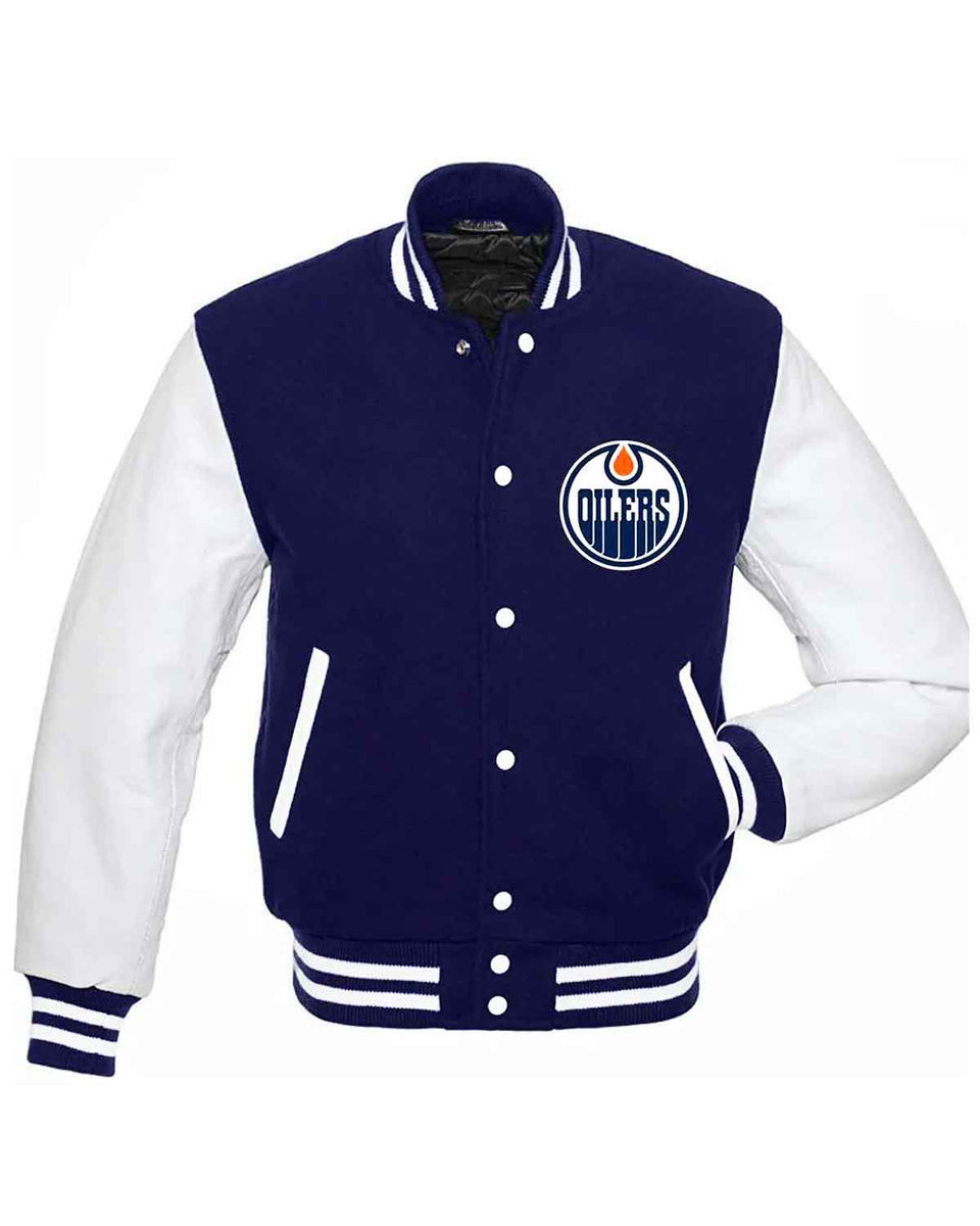 Glowrexs Edmonton Oilers Letterman Blue and White Jacket Sale
