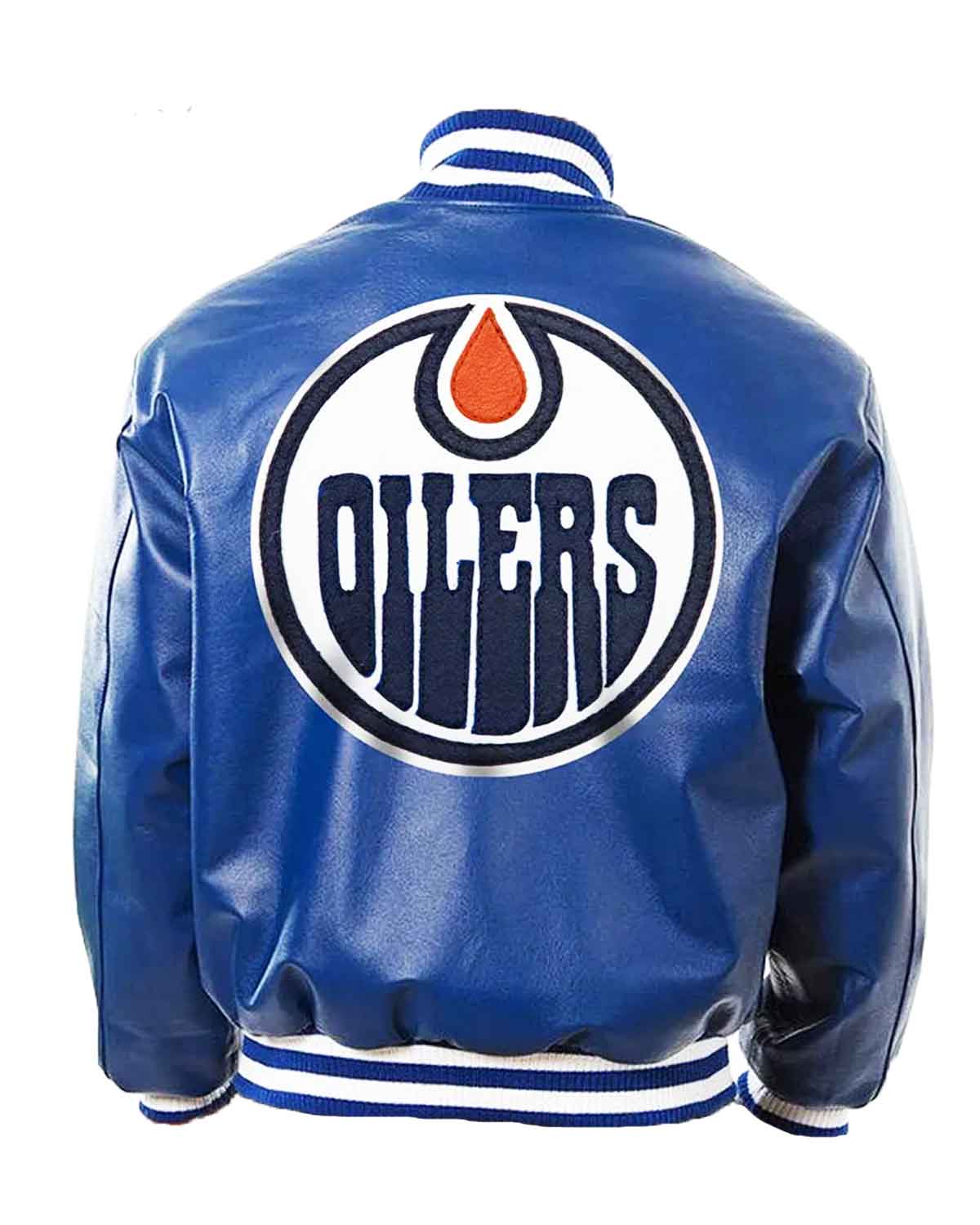 Glowrexs Edmonton Oilers Royal Blue Bomber Leather Jacket Sale