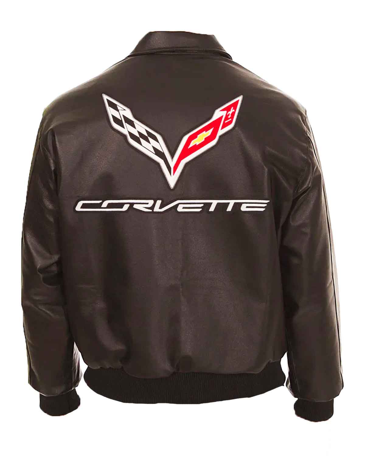Glowrexs Embroidered Corvette Shirt Collar Black Leather Jacket Sale
