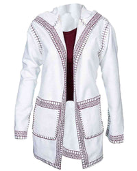 Introducing our Women's White Wool Blend Jacket. This jacket is made from a luxurious wool blend, providing warmth and comfort during colder seasons. The white color adds a clean and elegant touch to your ensemble.