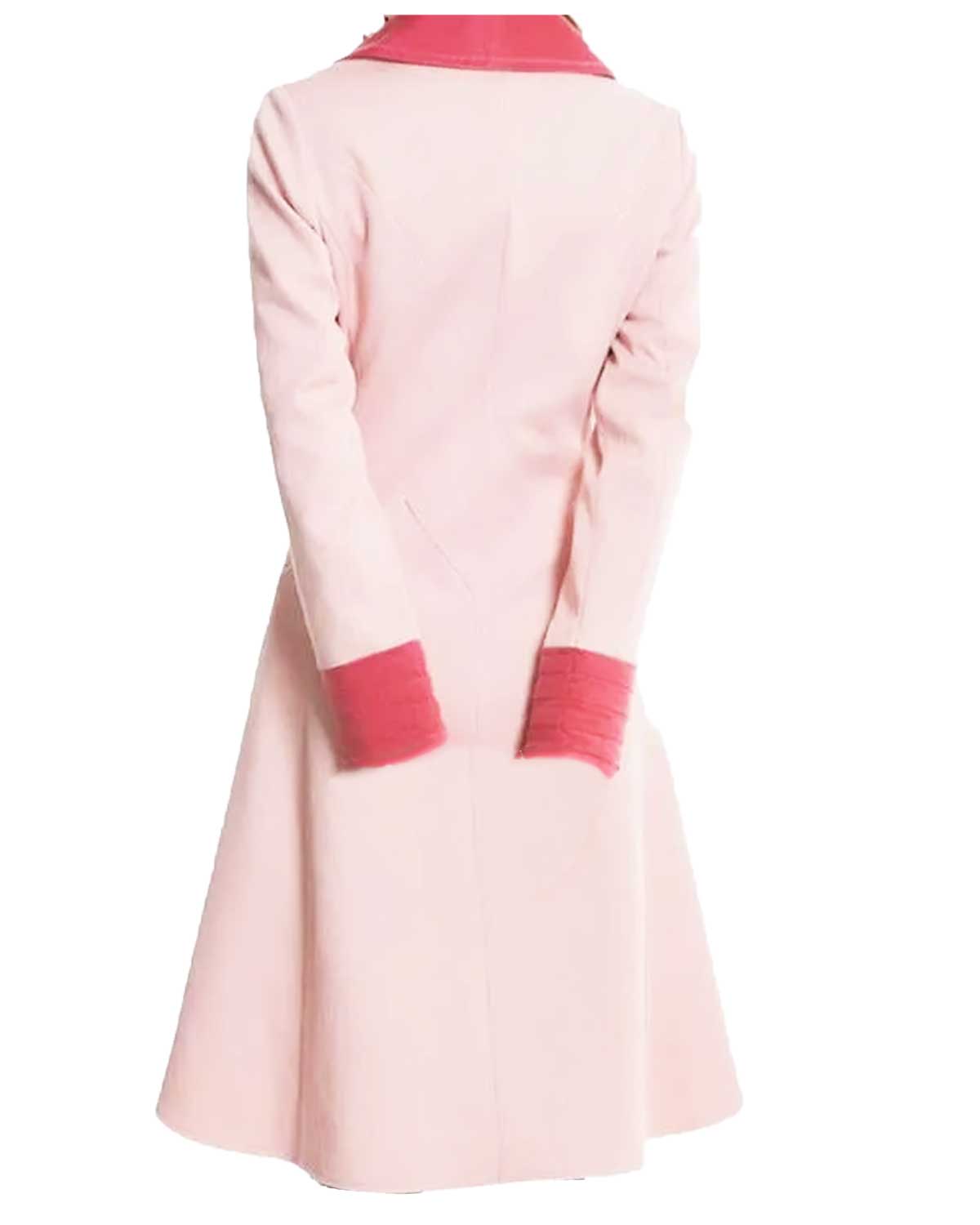 The plush viscose lining ensures a comfortable and luxurious feel. The subtle pink color adds a touch of charm, making it a standout piece. With convenient inside pockets, this coat seamlessly blends practicality with elegance.
