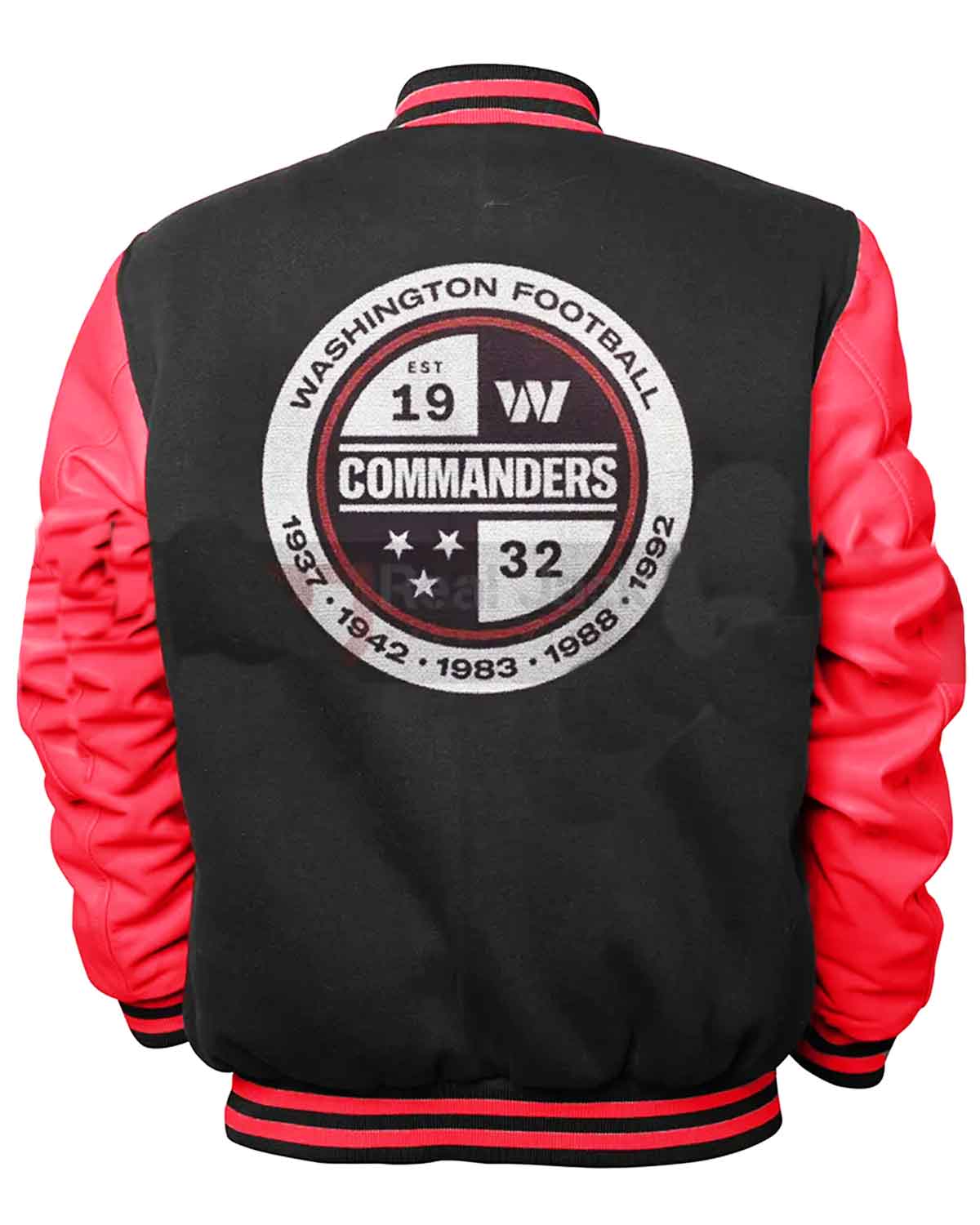 Designed with a rib neck collar, the Washington Commanders Jacket adds a touch of athletic taste, while the buttoned closure ensures ease and style. The striking black and red color scheme reflects the team's iconic colors, making it a perfect choice for fans. Whether you're heading to a game or just out and about,