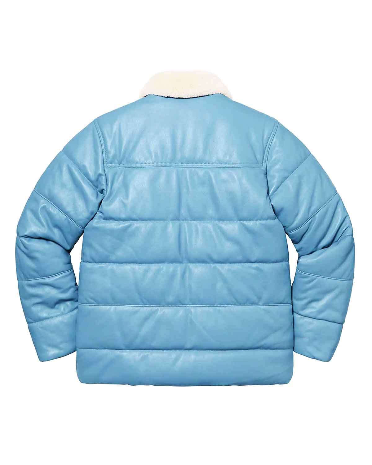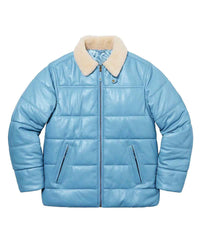 Glowrexs Fur Collar Puffer Leather Jacket - XS / Blue