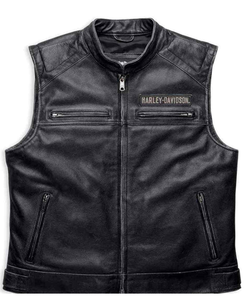Glowrexs Harley Davidson Mens Embroidered Passing Link Leather Vest - Black / XS