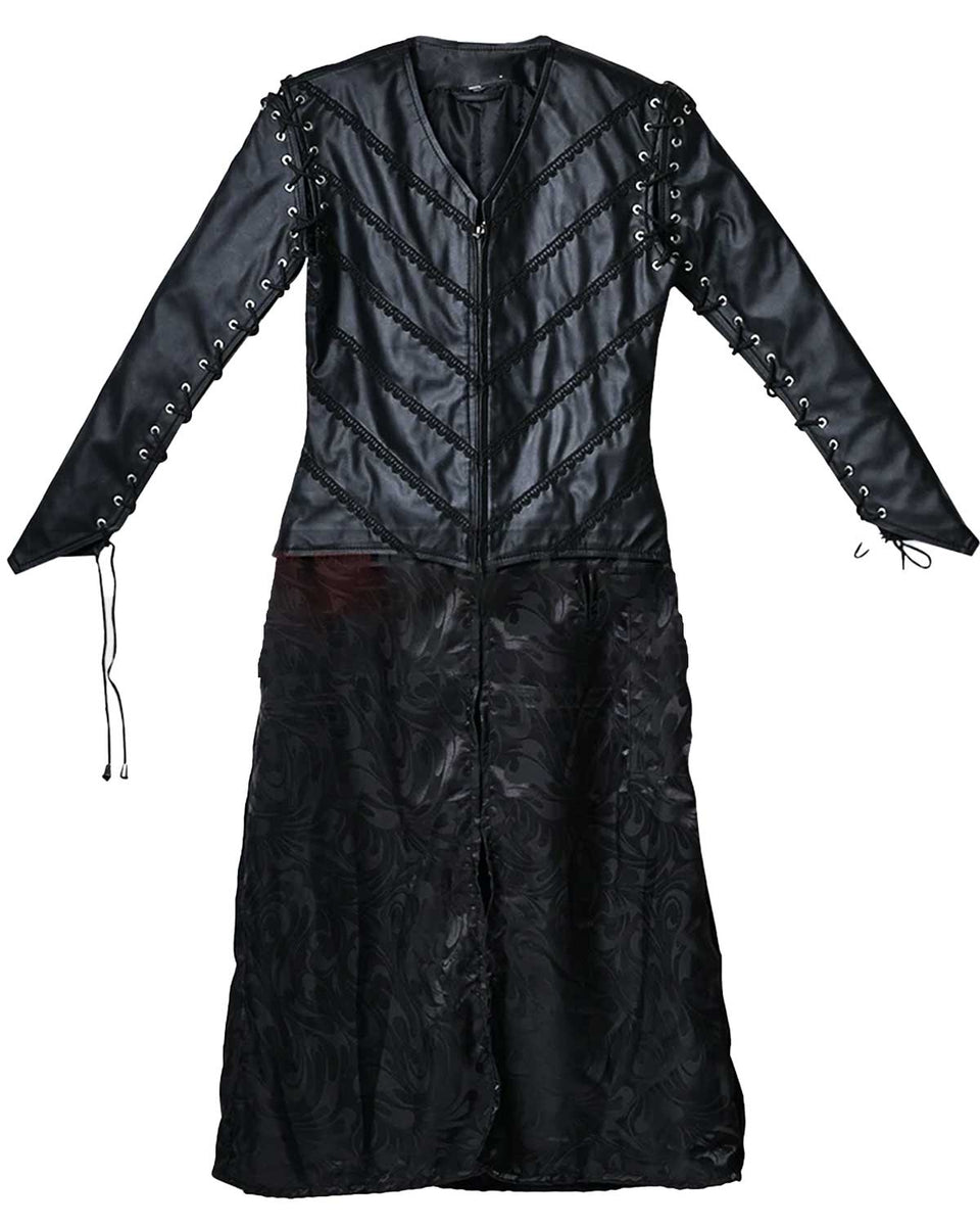 The front features a zipper closure, allowing for easy wear and removal during your Halloween adventures. The lapel collar adds an elegant touch, capturing the essence of Helena Bonham's character. Full sleeves contribute to the overall charm of the costume.