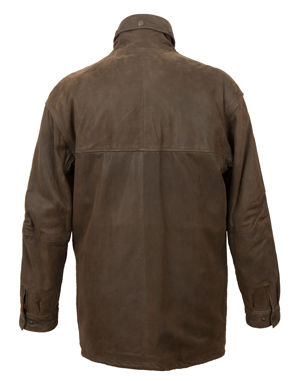 This tan-brown leather jacket features a classic design with a zipper front closure and a shirt-style collar. The coat is typically a mid-length design, providing adequate coverage and warmth during colder seasons. It may have various pockets, both on the exterior and interior, allowing for convenient storage of small items.