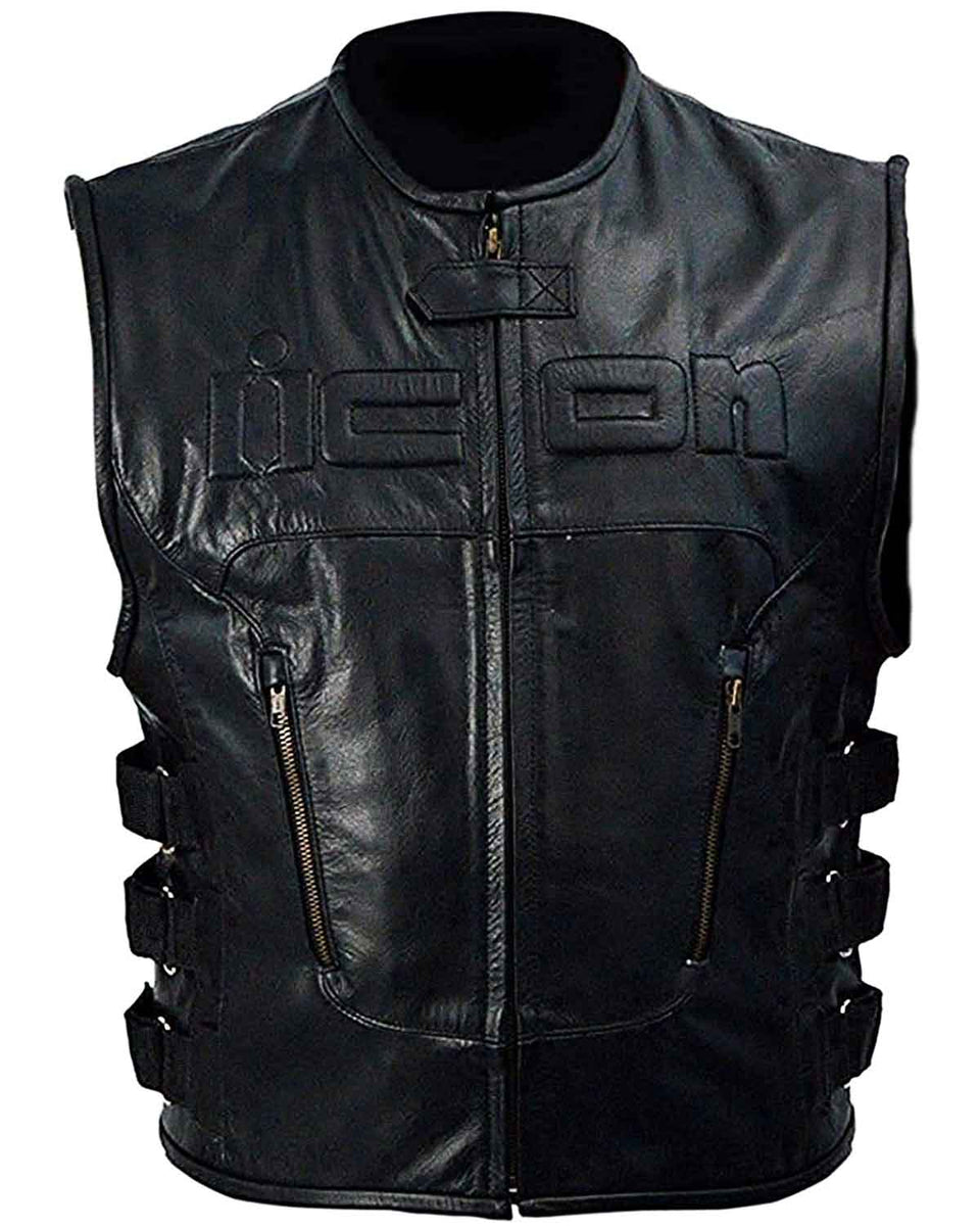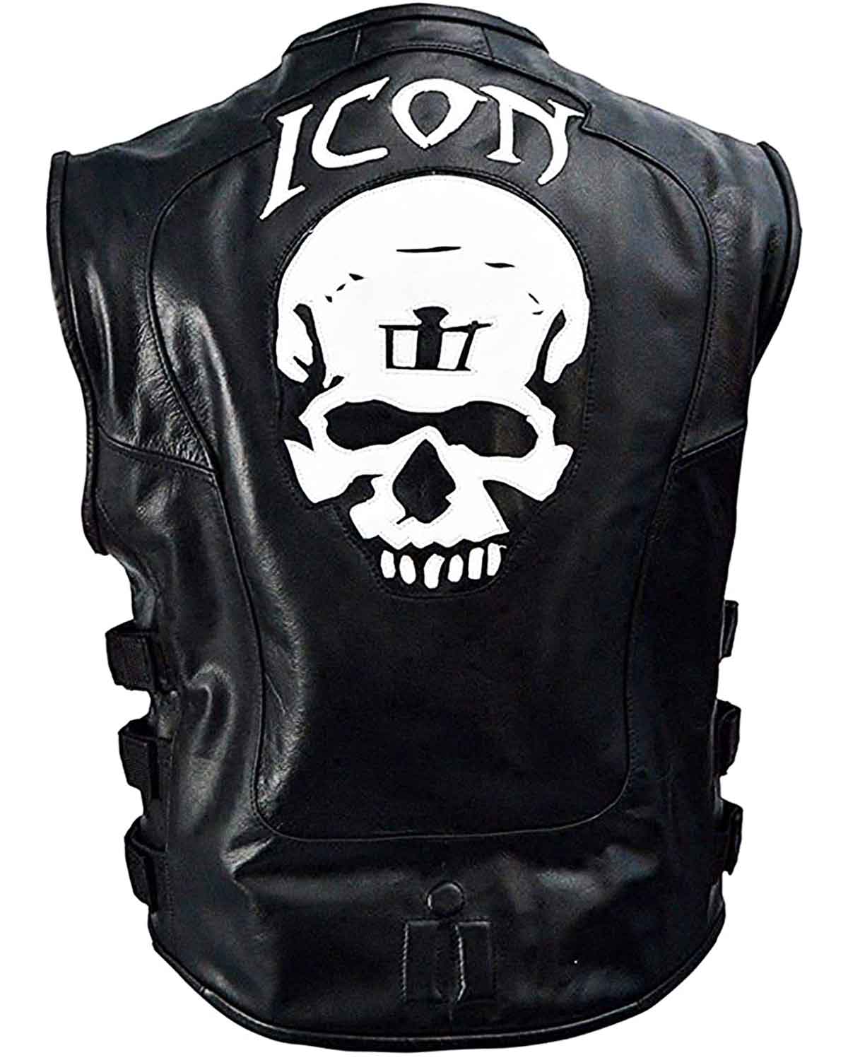 Glowrexs Icon Skull Motorcycle Black Leather Vest Sale