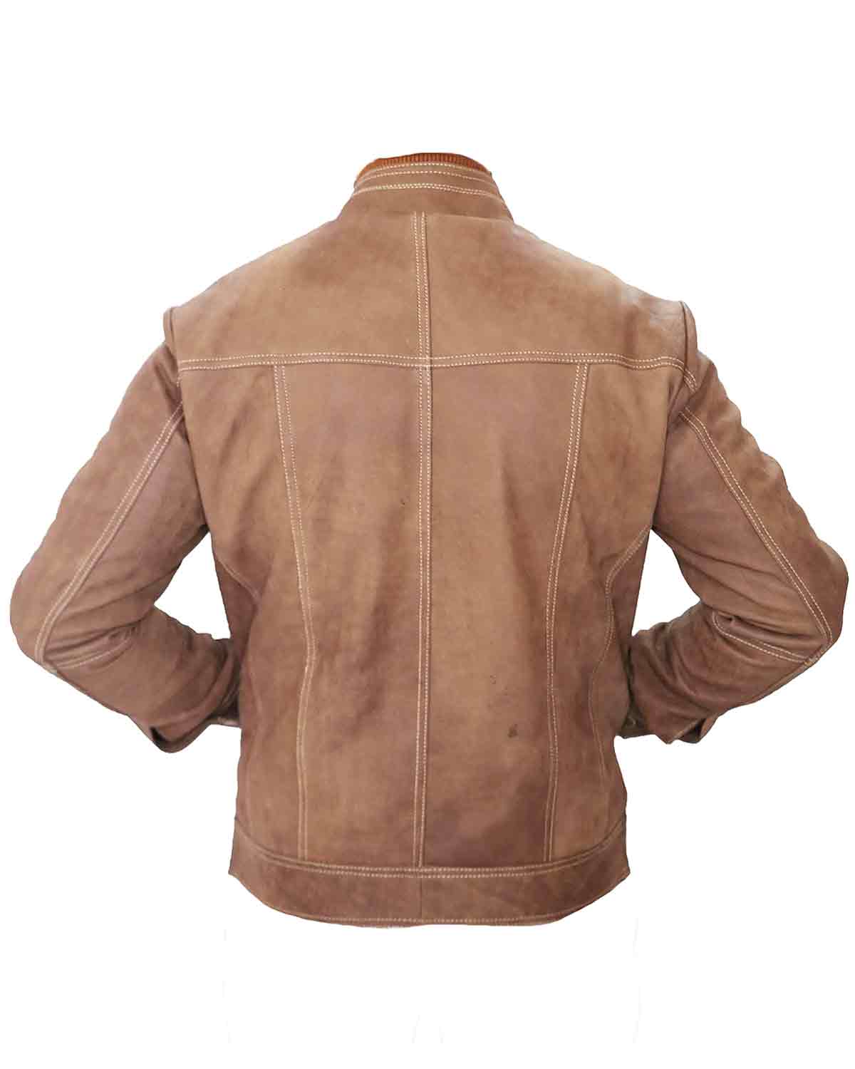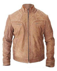 The distressed design is enhanced by the stand up collar, giving the whole thing a bold and edgy appearance. The button cuffs elevate the overall look while the zipper closure ensures both elegance and utility.