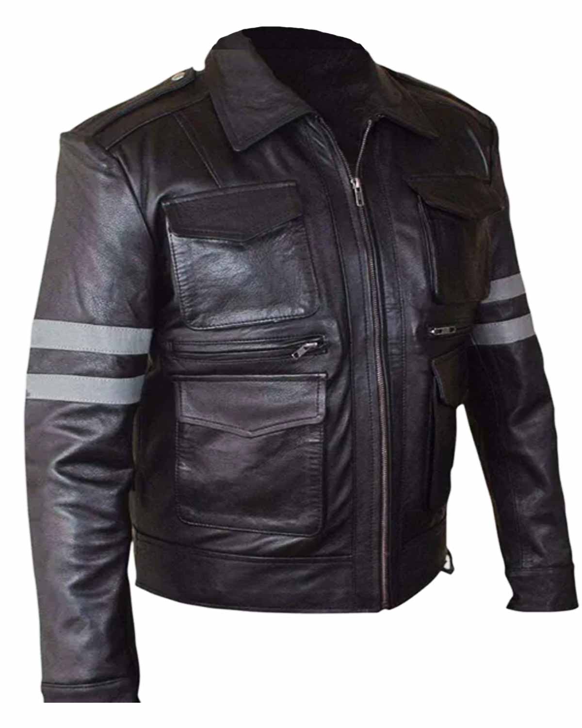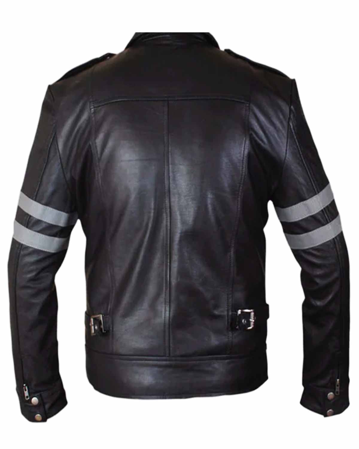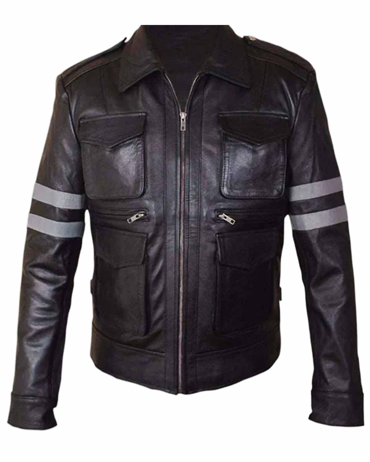 The sleeves of the Resident Evil 6 Leather Jacket have a grey stripes print which makes this product an eye-catching