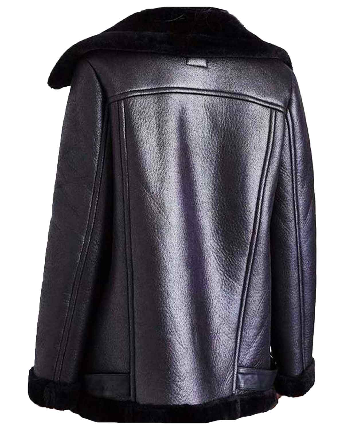 The fine stitching attests to the accurate craftsmanship, highlighting the jacket's quality. The full sleeves with shearling cuffs and shearling lapel style collar add a distinctive touch of style. The YKK branded asymmetrical zipper style front not only contributes to the jacket's unique design but also ensures durability. Two front side zipper pockets provide a practical yet fashionable element, completing the ensemble.