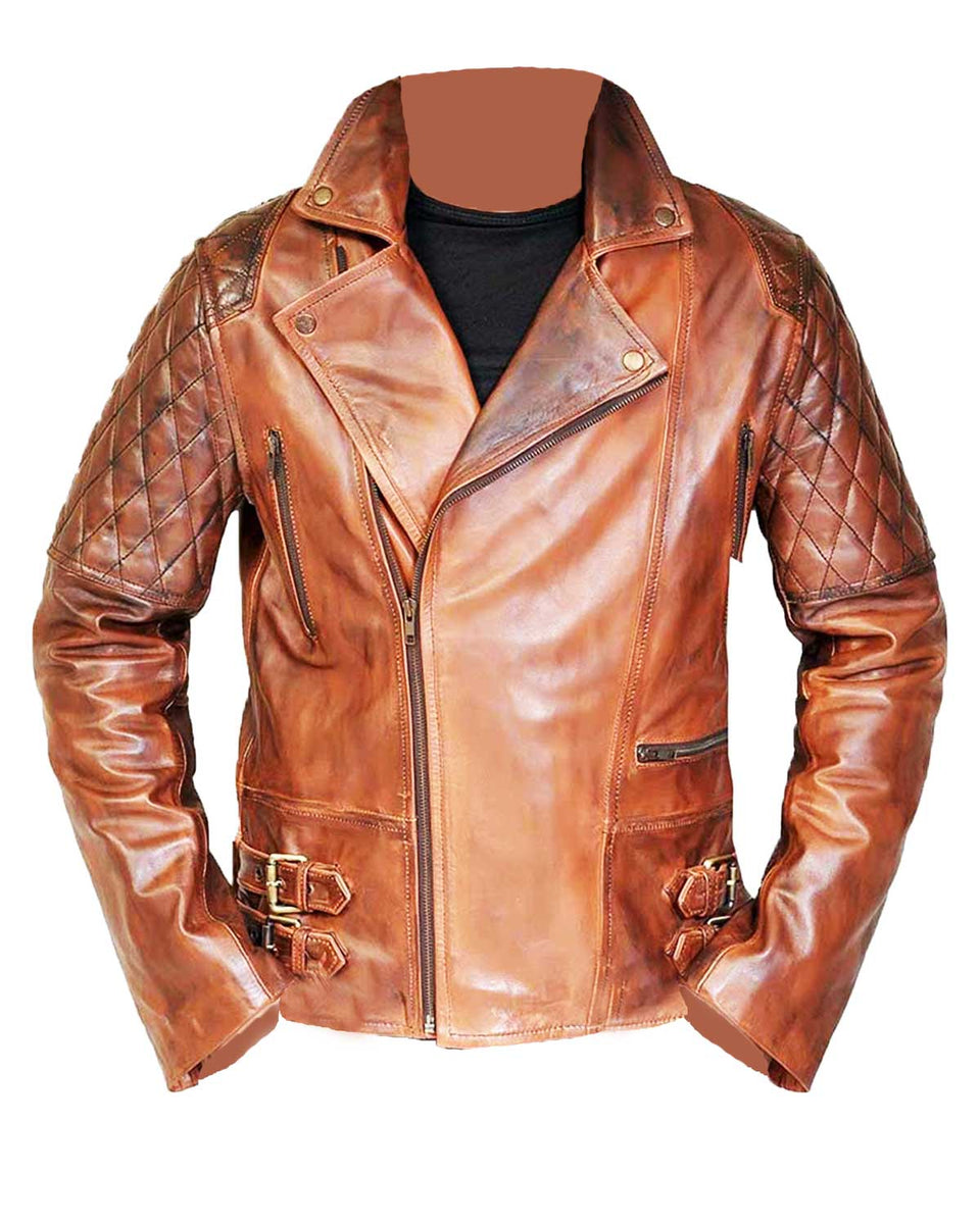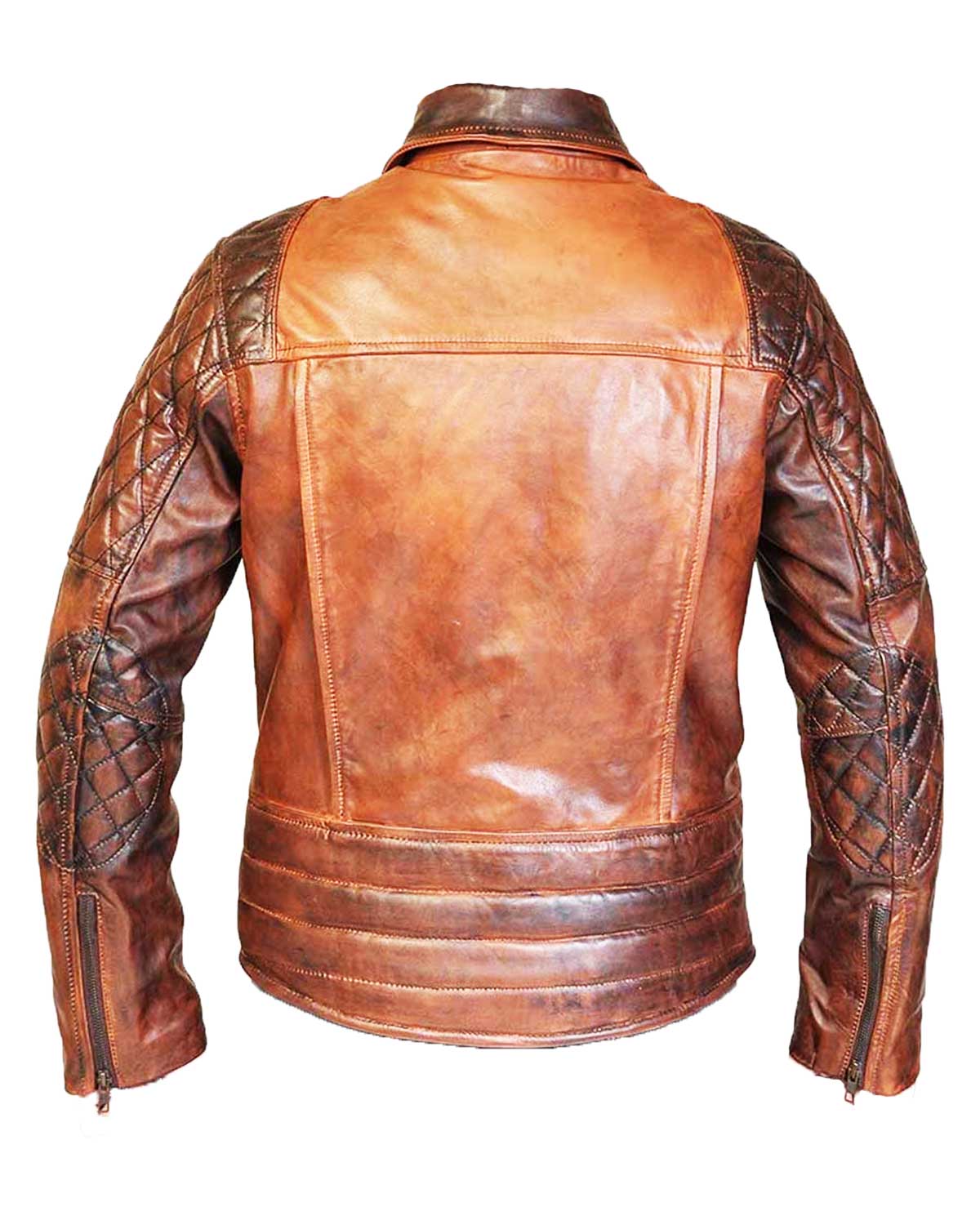Glowrexs Men’s Biker Vintage Rustic Quilted Brown Leather Jacket Sale