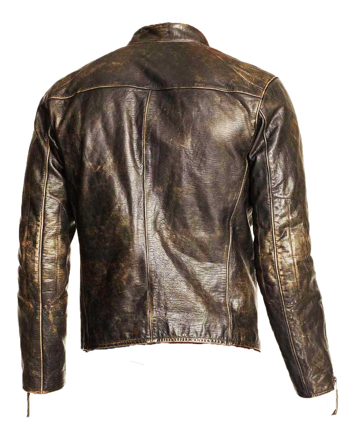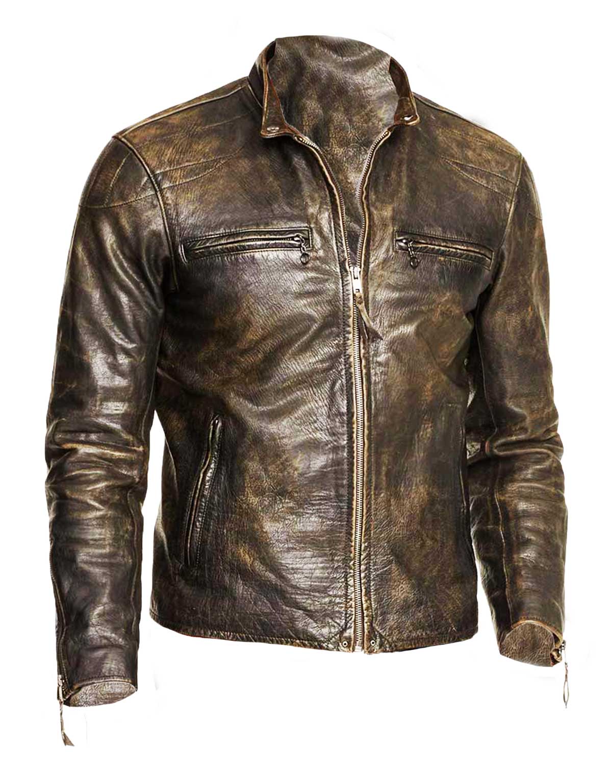 Glowrexs Men’s Dark Brown Distressed Leather Motorcycle Jacket Sale
