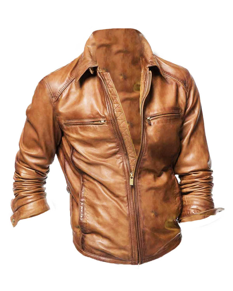 Glowrexs Men’s Designer Moto Tan Brown Leather Jacket Sale