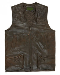 The Brown Shooting Vest is a antique type of jacket ,taking us to the vintage era.The material used in making is Leather.In front a heavy duty zip is placed giving this a sharp look.This is a demanding product among men With Two handwarmer pockets, Two zip fasten lower bellow pockets, Rear zip fasten poachers pocket and Two inside pockets, one zip, and one button with fastening.