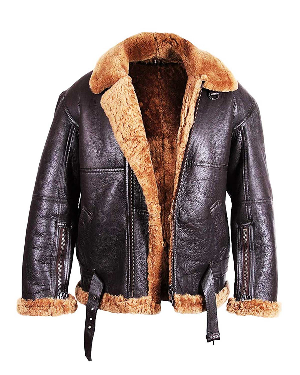 Glowrexs Mens Aviator Flying B3 Shearling Sheepskin Leather Bomber Jacket Sale