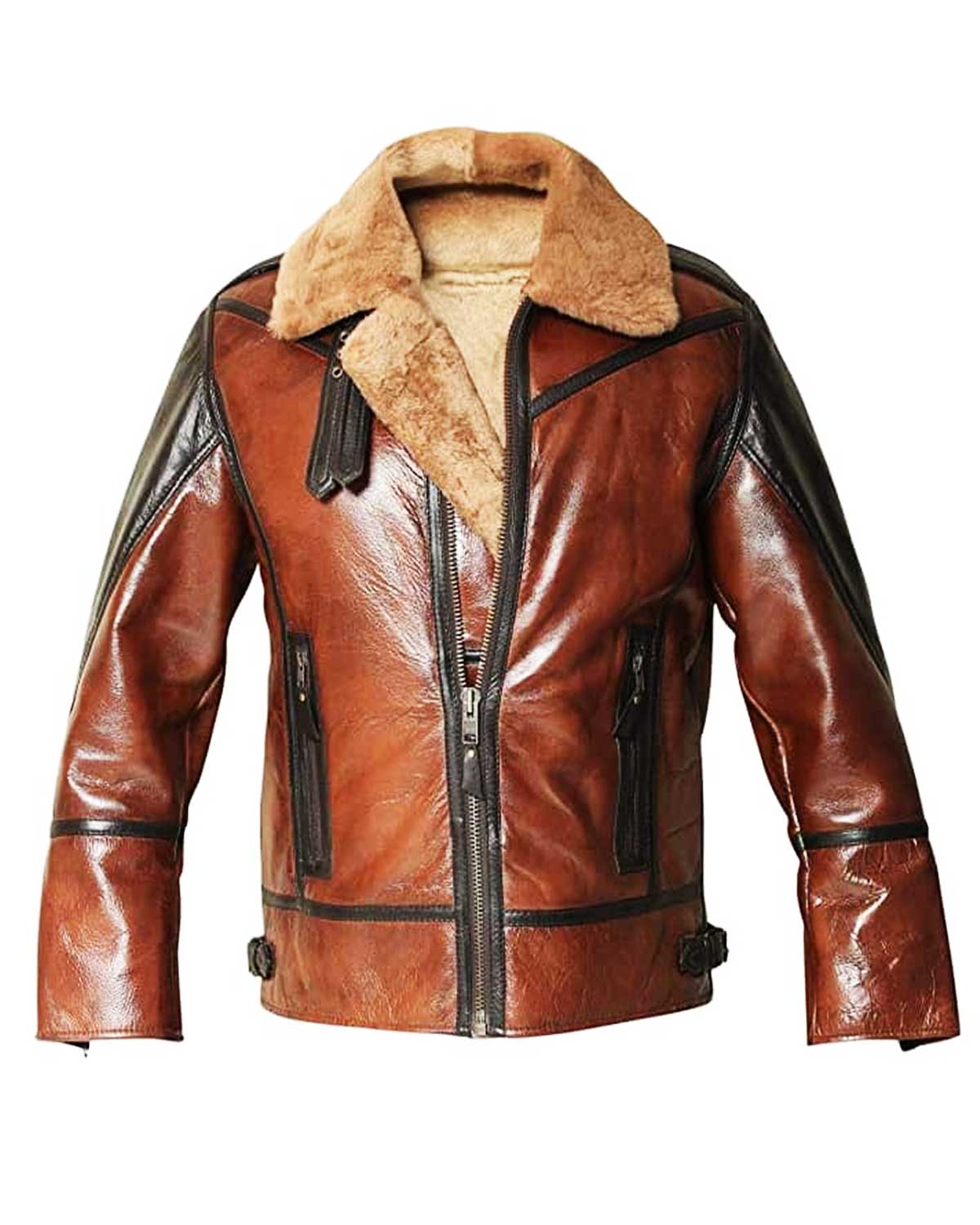 The belted strap shirt style shearling collar adds a distinctive touch, while the distressed detailing enhances its vintage appeal. Designed for functionality, the B3 Shearling Aviator Distressed Jacket features two zipper pockets at the waist and two inward pockets. The zipper fastening on the front and full sleeves with zipper cuffs complete the edgy look.