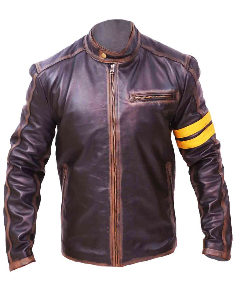 The internal lining is luxuriously soft viscose, ensuring a heavenly touch against the skin. A distinctive touch is added by the stand-up style collar, exuding an aura of refined elegance. The full-length sleeves gracefully drape the arms, while the round cuffs complete the ensemble with a touch of understated charm. Elevate your wardrobe with this Leather Jacket With Yellow Strip.