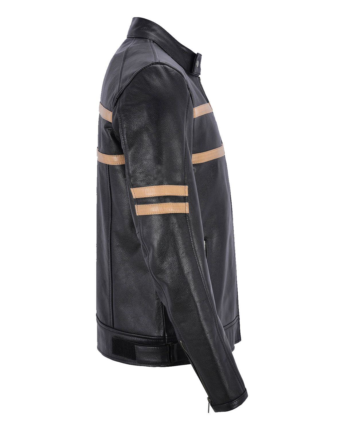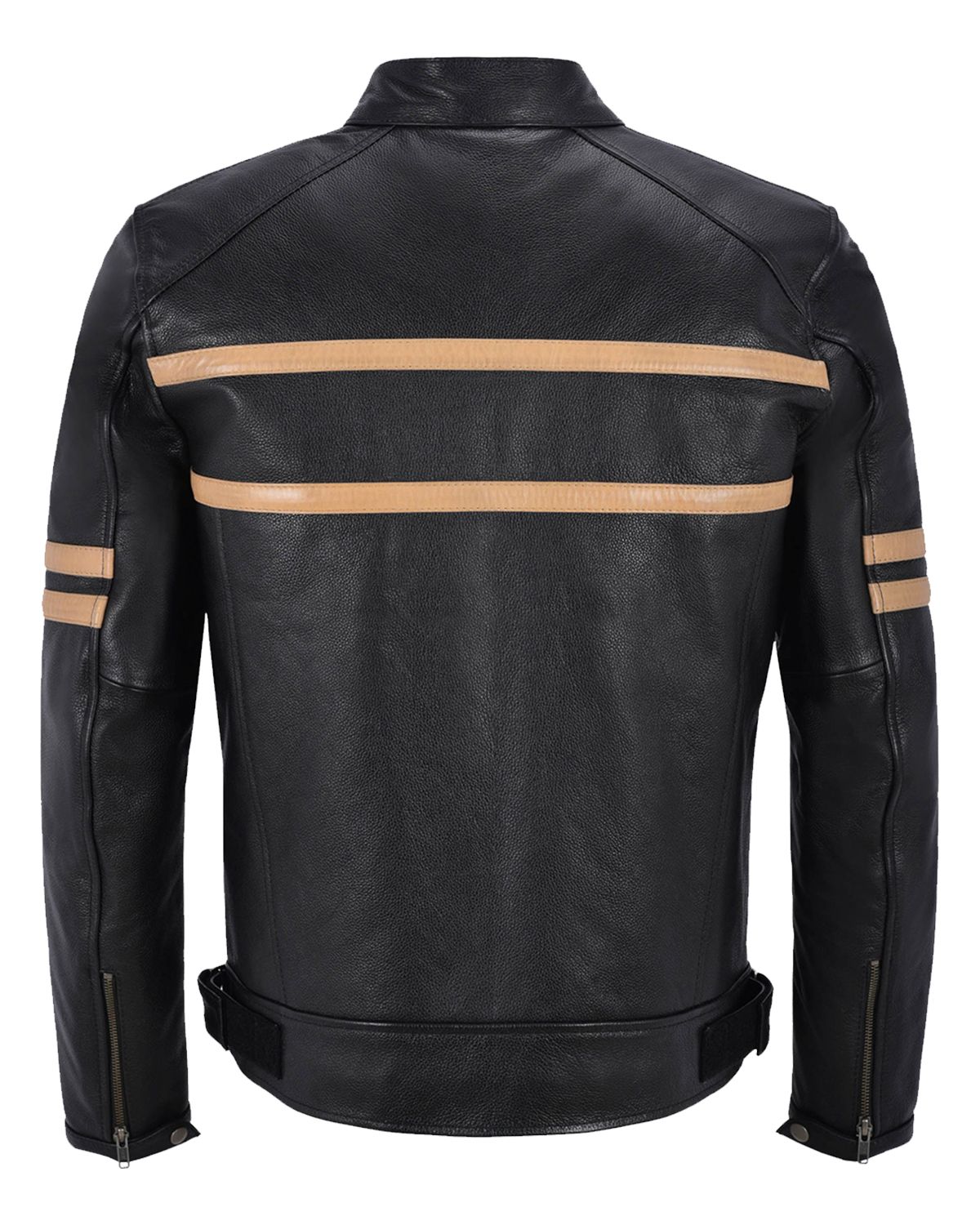 Glowrexs Men's Black With Beige Stripes Biker Motorcycle Leather Jacket - Black / XS