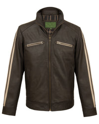 Presenting the brown leather motorcycle jacket.There is no need to search any farther if you want something a little unique that will last.Yes you are at a correct place to get your favorite look!This brown Leather jacket's leather is a smooth, sturdy hide with a deep satin finish that is comfortable to wear and still maintains the worn-in, vintage look of the legendary throwback racing coats from 1950s movies.