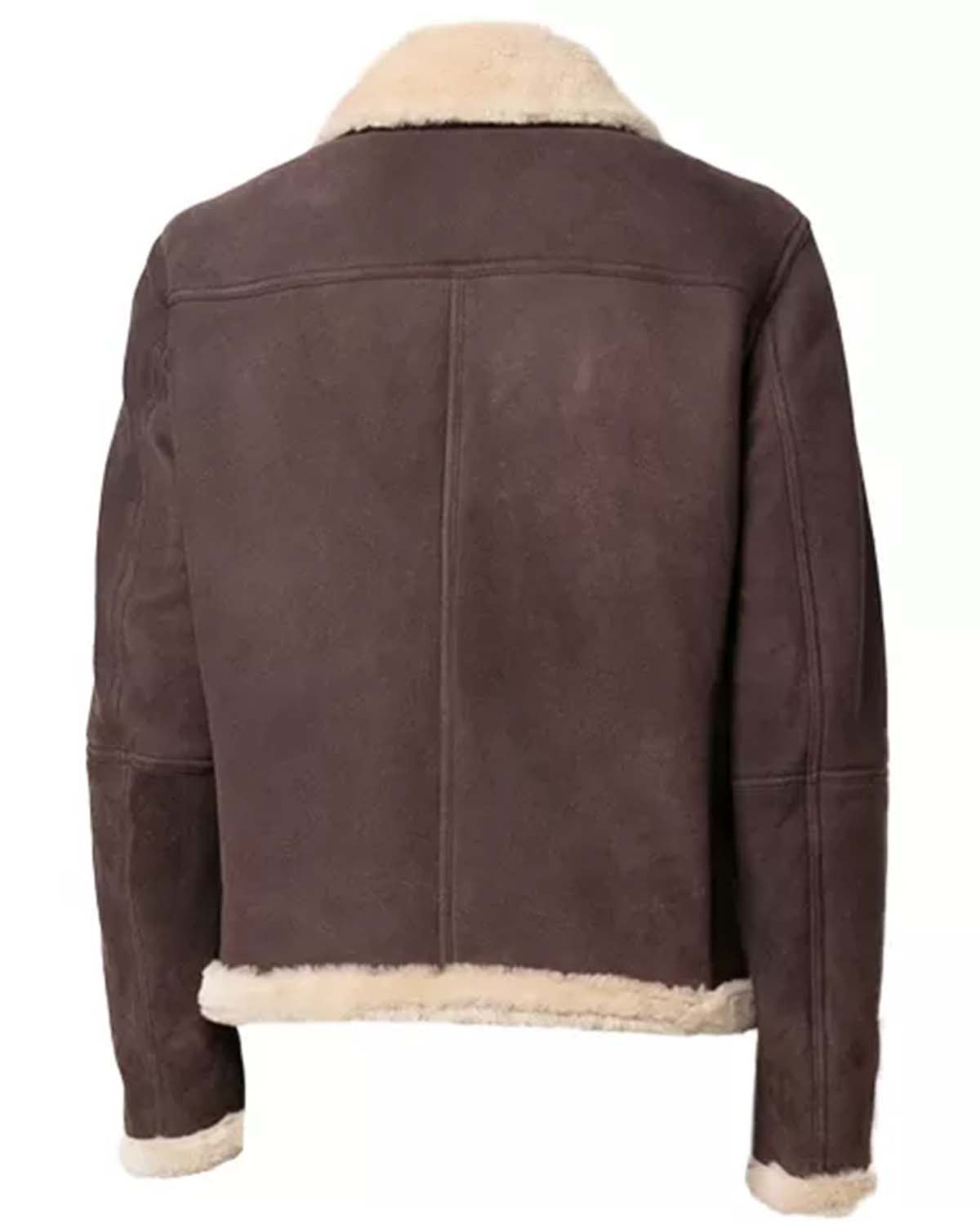 The men's brown suede jacket with a sherpa collar is a fashionable and functional piece of clothing. This aviator-style coat is made of top-notch sheepskin that is both warm and durable.